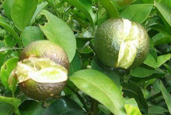 果实膨大期缺钙肥,果皮韧性差,易裂果。